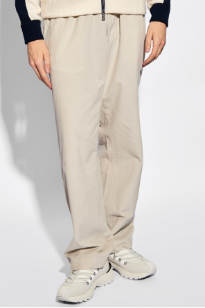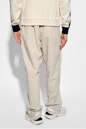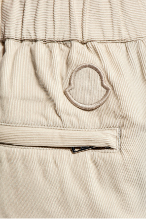 Moncler的浅灰色灯芯绒裤子。抽绳松紧腰头。前面拉链开合。后面饰有标志贴花。三个口袋:两个前插袋和一个后拉链口袋。长裤腿。