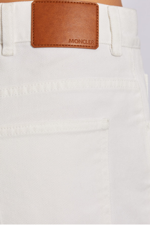 Moncler的高腰白色牛仔裤。纽扣和拉链开合。后面饰有标志贴花。五个插袋。直筒长裤腿。
