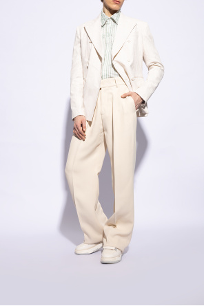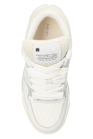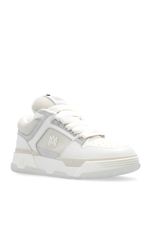 Amiri的白灰奶油色MA-1运动鞋,系带设计。由皮革和面料制成。饰有标志贴花、星形饰孔和网眼饰片。白灰色橡胶外底。