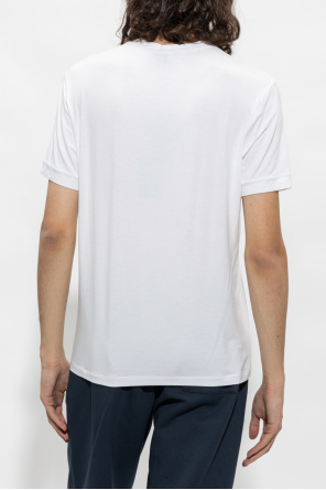Giorgio Armani的白色圆领T恤。 采用弹力粘胶平针织面料制成。短袖,松紧衣领,正面饰有刺绣标志。