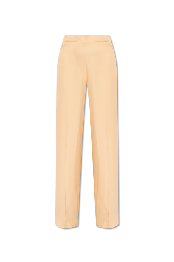 JIL SANDER的米色阔腿裤。侧边采用隐藏式拉链开合。宽松裤腿。