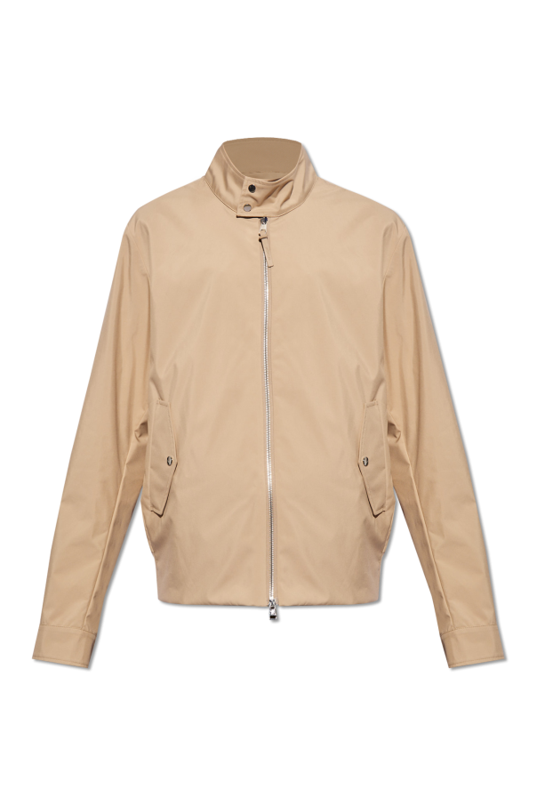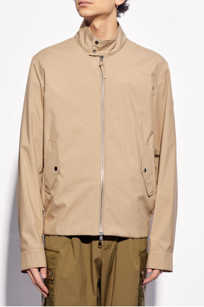 Moncler的浅棕色Chaberton轻质夹克。双向拉链开合。袖子上饰有标志贴花。立领,两个盖袋口袋,长袖设有按扣袖口。底部两侧设有插入式松紧饰边。