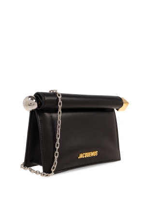 Jacquemus的黑色La Petite Pochette Rond Carre单肩包。采用羊皮制成。磁扣开合。正面饰有金属logo图案。背面设有磁扣口袋。提手饰有球形和立方体细节。内部配有一个带卡槽的主隔层。金色和银色金属饰件。