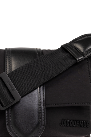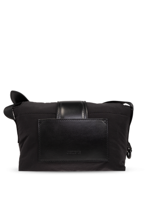 Jacquemus的黑色Le Petit Messenger Bambino单肩包。采用技术面料制成,配以皮革饰边。磁扣开合。正面饰有标志贴花。背面设有一个插袋。可调节的单肩带。内部设有一个主隔层和两个口袋:一个插袋和一个拉链口袋。