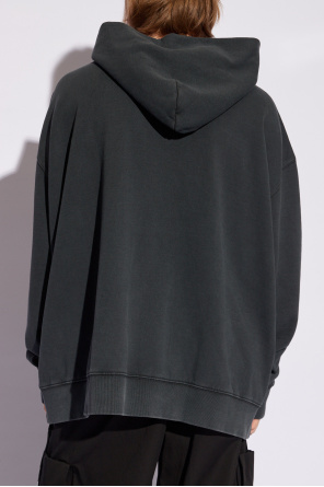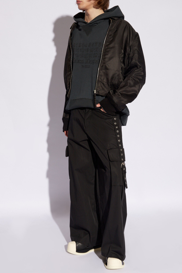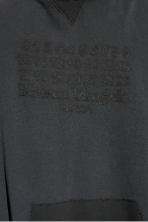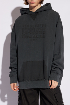Dark grey hoodie from MM6 Maison Margiela. Made from cotton with a relaxed fit, this style showcases an embroidered logo, distressed effects and ribbed trims on the bottom hem and cuffs.