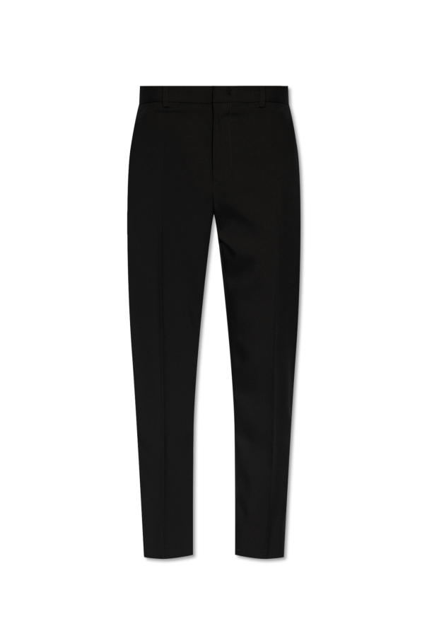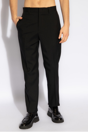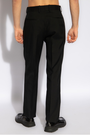Black pleat-front trousers from JIL SANDER. Made of wool, this pair falls with straight legs and features a zip fly with a button and hook, two front slit pockets and two back slip pockets.