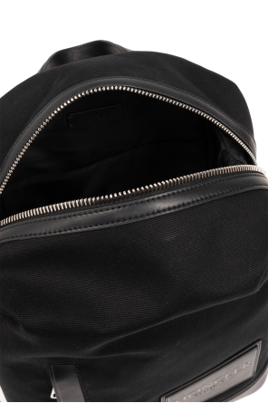 Black ‘Alanah’ backpack from Moncler. Made from canvas and trimmed with leather, this design fastens via a two-way zip and snaps on the sides and showcases a logo patch on the front, one zip pocket on the front, one half-round handle, silver-tone metal hardware, adjustable shoulder straps and one internal compartment with a slip pocket.
