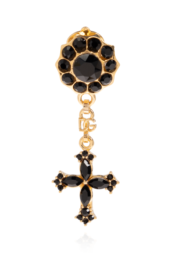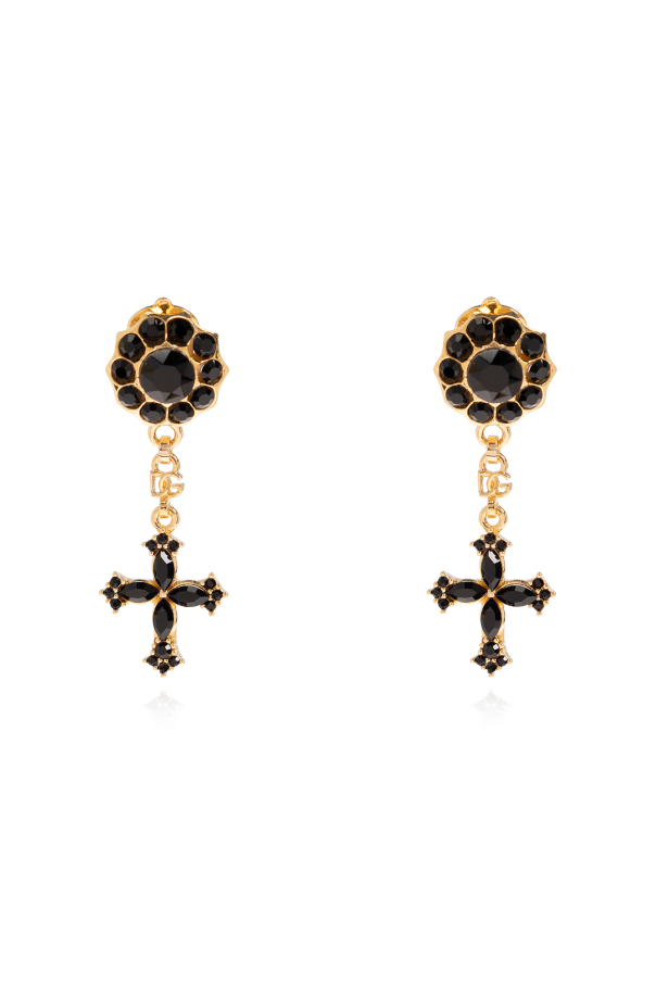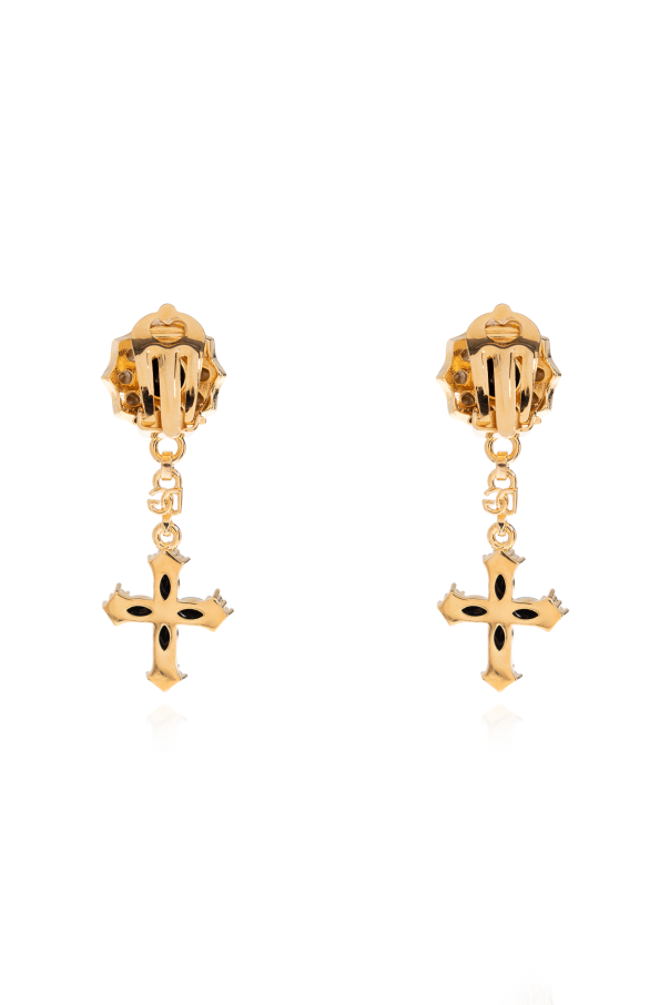 Gold-tone clip-on earrings from Dolce & Gabbana. Made from brass, they showcase black cross pendants.