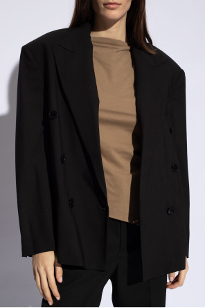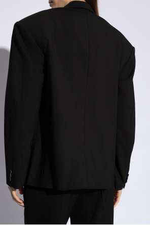 Black ‘Klero’ double-breasted blazer from Isabel Marant. Made of wool, this loose-fitting design features buttons, peak lapels, two flap pockets, one slip pocket and long sleeves.