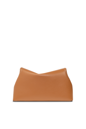 Brown shoulder bag from Toteme. Made of leather, this design features a flap with a twist closure, cream stitches, detachable and adjustable shoulder strap, silver-tone metal hardware and one internal compartment with one card slot.
