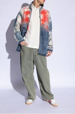 White, grey and red ‘SAMBA OG’ sneakers from ADIDAS Originals. Made of fabric and synthetics, this lace-up pair features a logo, the brand’s signature three stripes in red as well as a brown rubber sole.