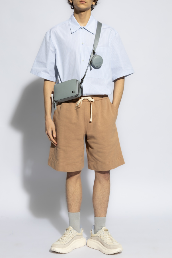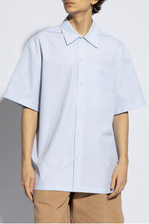 Blue and white shirt from Jil Sander. Made from cotton, this style showcases a stripe pattern, button fastenings, short sleeves and a slip chest pocket accompanied by an embroidered logo.