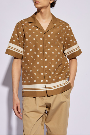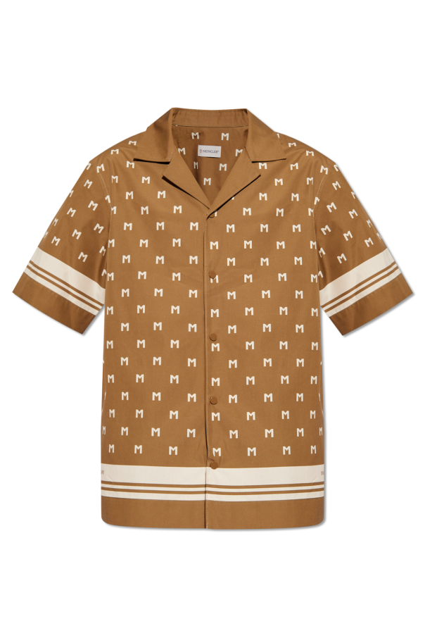 Brown and cream shirt from Moncler. Made from cotton and enriched by a monogram pattern, this style features snap fastenings, short sleeves and side slits.