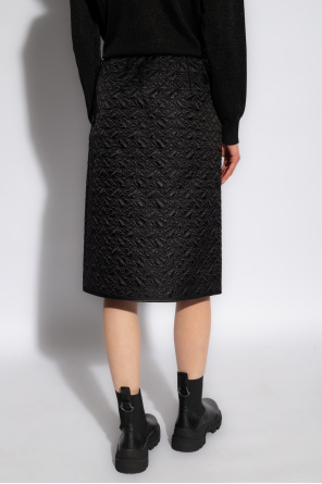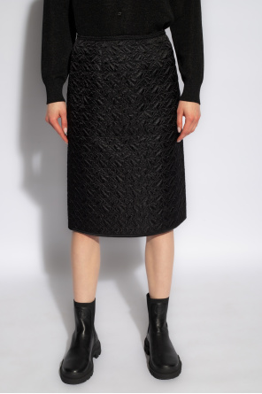 Quilted skirt in black from Moncler. This style features a side zip accompanied by a hook & eye closure.