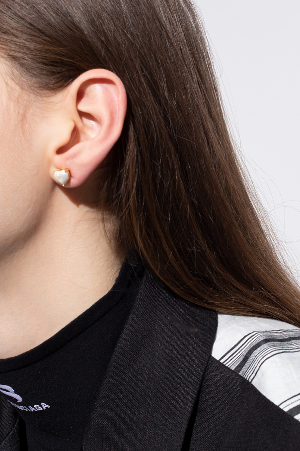 Gold-tone ‘My Love’ earrings from Kate Spade. Embellished with a glass heart pearl, they feature stud fasteners.