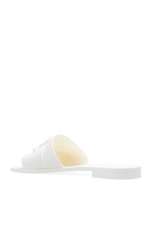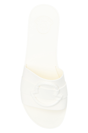 White slides from Moncler. Made of rubber this model showcases a logo-shaped application on the front.