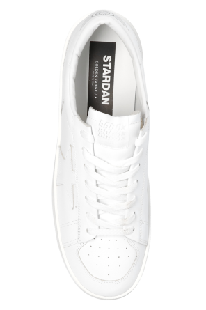 Golden Goose的白色Stardan运动鞋。皮革质。附系带。鞋舌饰有logo贴片。附孔洞设计。奶油色橡胶鞋底。