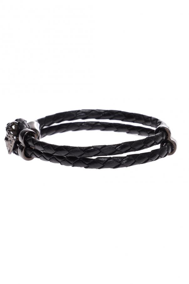 Versace的黑色编织手镯。皮革质。附勾扣。附银色调黄铜质Medusa头饰。