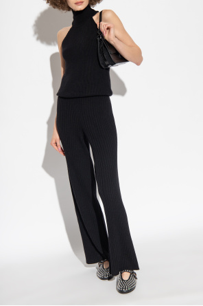 Black ballet flats from Alaia. Made from lamb leather, this model sits on a black rubber sole flaunting the brand's signature pattern and showcases an adjustable buckle strap and crystal-bejewelled metal applications all over.