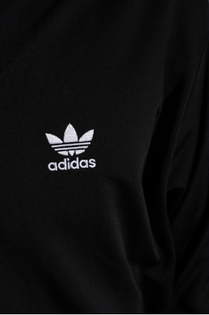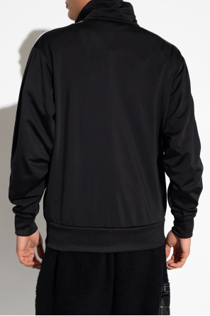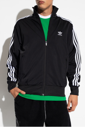 ADIDAS Originals的黑色运动衫,采用再生面料制成,拉链开合,三叶草徽标刺绣,品牌标志性的白色三条纹,立领,两个拉链口袋,下摆和袖口处有罗纹饰边。