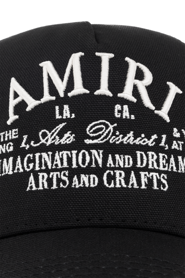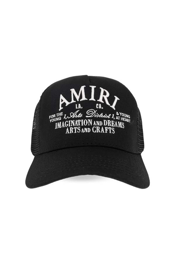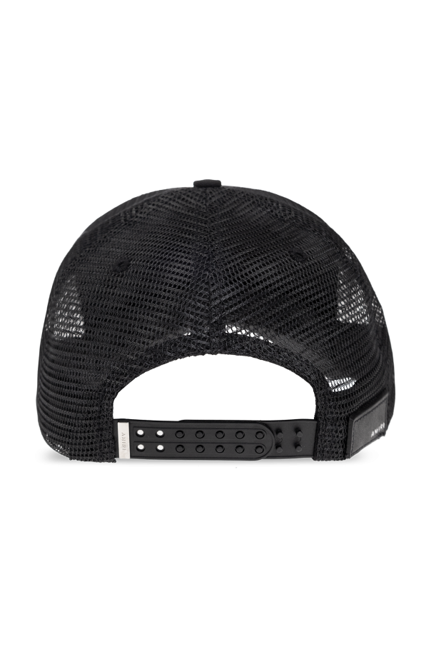 Amiri的黑色棒球帽,采用棉质正面和网状背面,后置可调带,正面饰有奶油色徽标刺绣。