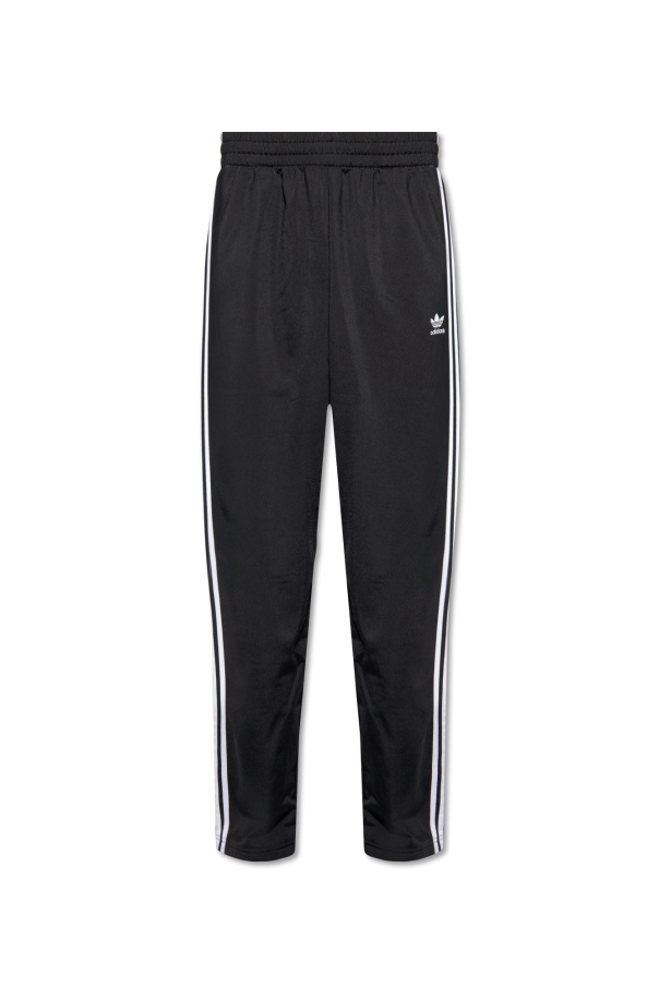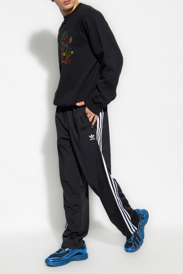 Black sweatpants from ADIDAS Originals. Made of recycled fabric, this pair features an elastic drawstring waistband, embroidered logo, the brand's signature three stripes in white, two zipped pockets and slightly tapered legs with zips.