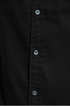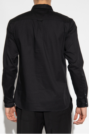 AllSaints的Hawthorne黑色衬衫,采用棉质面料制成。纽扣开合。饰有刺绣标志。长袖。