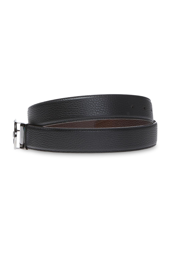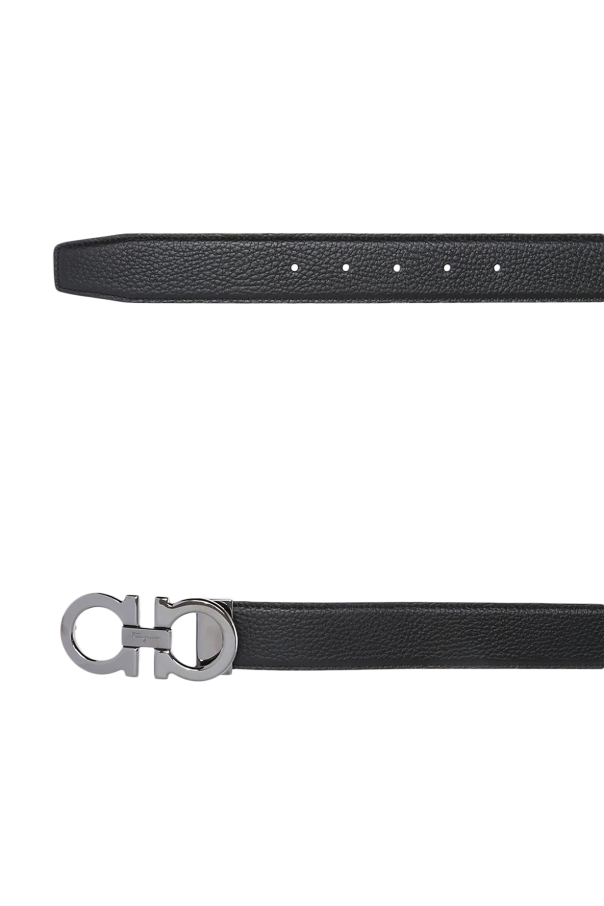 这款黑色腰带来自Salvatore Ferragamo,采用粒面小牛皮制成,配有黑色标识形搭扣。