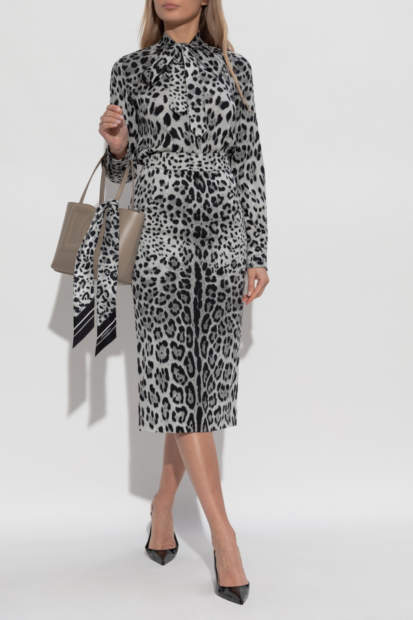 裙装 > Dolce & Gabbana 灰色 动物图案丝绸裙
