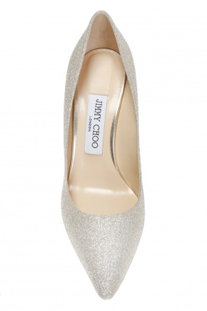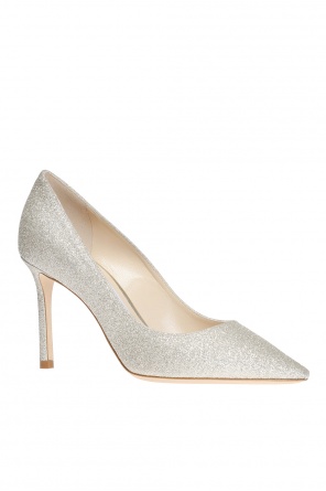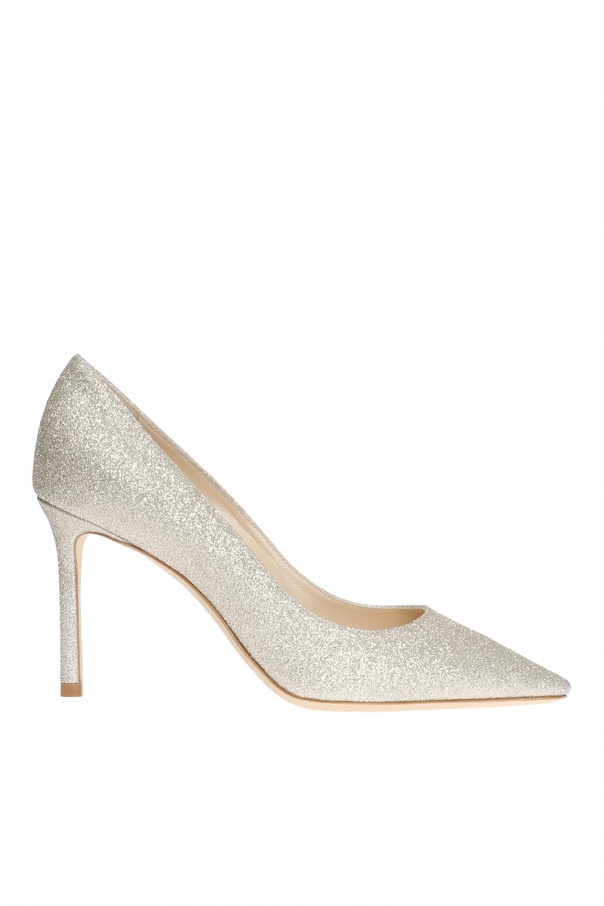 周仰杰(Jimmy Choo) 银质和金质 Romy 亮片舞鞋。皮革制造。米色绒面革鞋底。